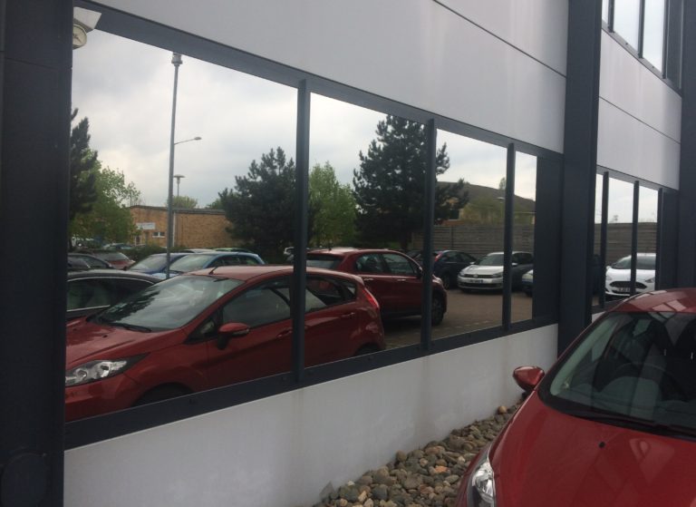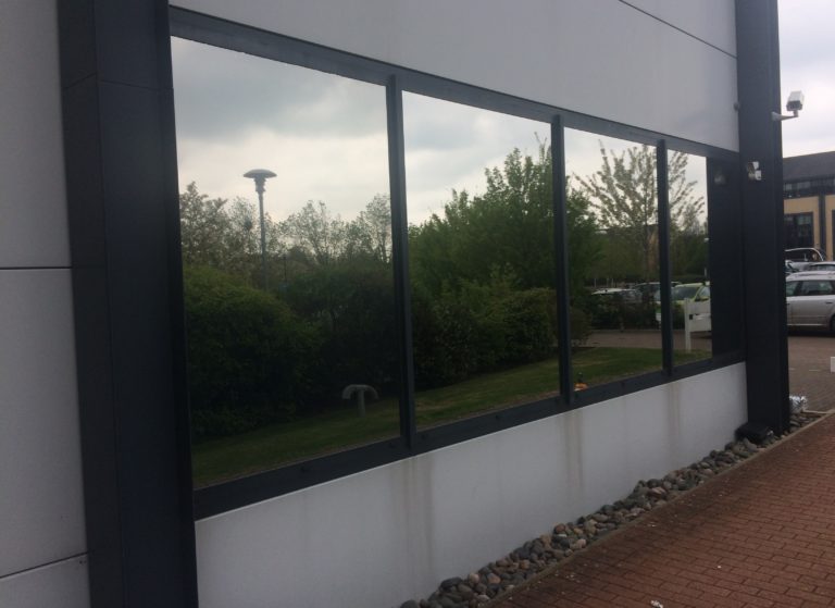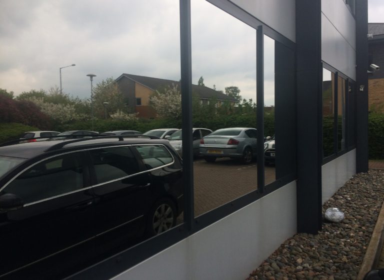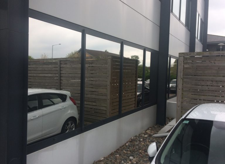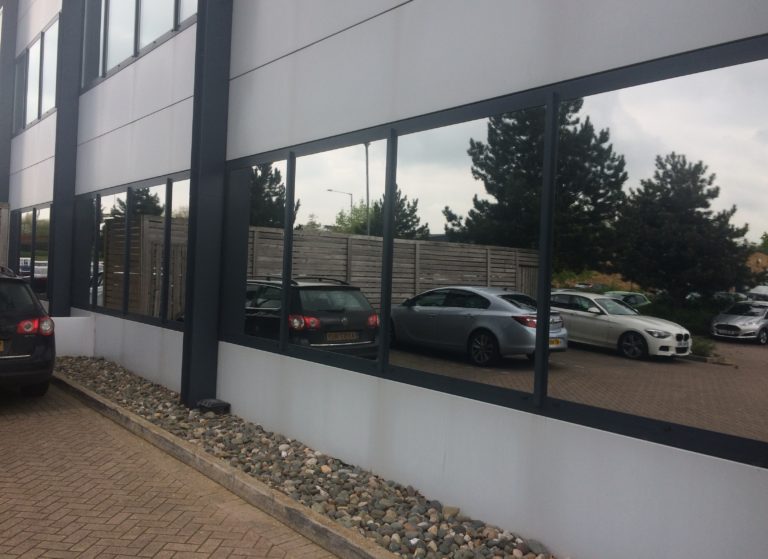 We were asked by our client to install a window film that would reduce the heat and glare coming through their office windows. The client specified that they wanted externally applied film as access wasn’t great on the inside. Tintfit recommended using our External Reflective Silver 15 10yr solar control film which is extremely effective for reducing heat and glare. This film also comes with a 10 year warranty so eliminates the need for replacing the film every few years as you usually need to do with external films. The client was was happy to go ahead with our recommendation and Tintfit installed External Reflective Silver 15 10yr window film to 42 panes of glass totalling 106m2.