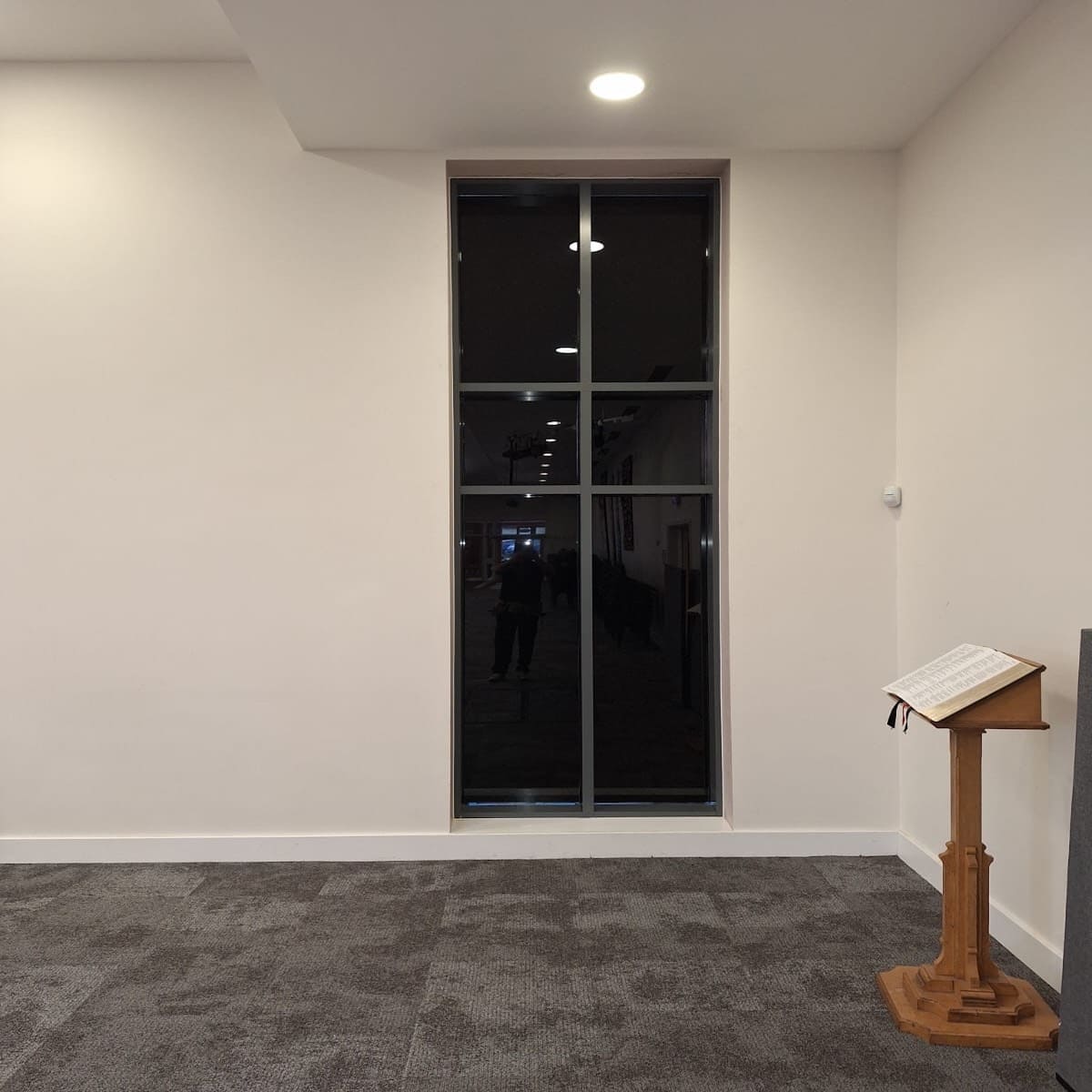 By choosing blackout window film, the church now enjoys round-the-clock privacy, even in spaces with large windows. Additionally, this film effectively reduces glare, creating a more comfortable and versatile environment for various activities within the church.