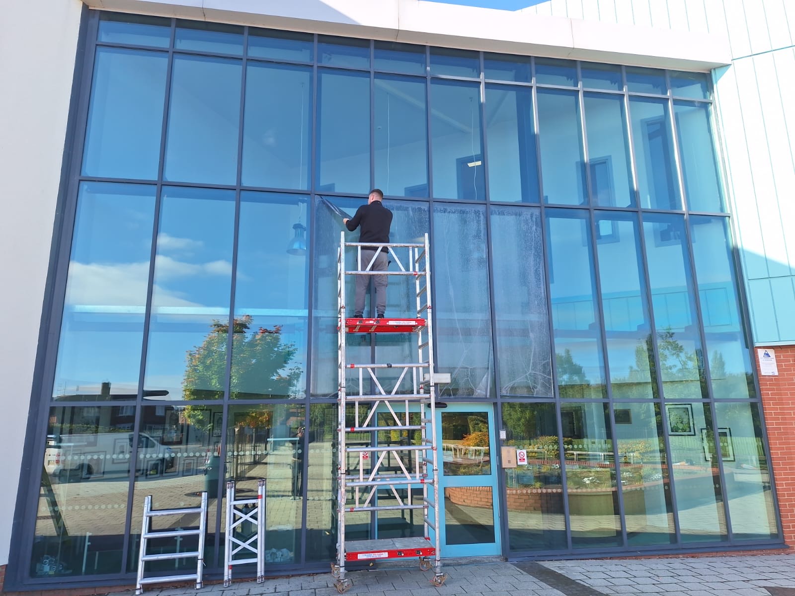 At Castle View Enterprise Academy, we recently undertook a project to resolve significant glare issues in the reception area. The existing window film had degraded over time, necessitating its removal and replacement with a more durable and effective solution.