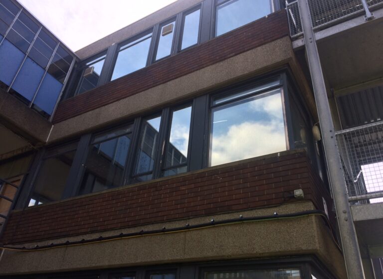 After surveying the building, Tintfit recommended Reflective Silver 20 100 Micron window film. This film combines both solar control with safety and security. Reflective Silver 20 100 Micron film reduces heat by 80% and glare by 83% whilst also upgrading the glazing to current EN12600 (2B2) regulations.